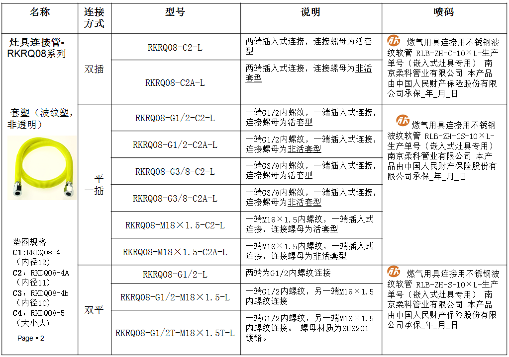 灶具连接管-RKRQ10系列 套塑(波纹塑,非透明,普通管)
