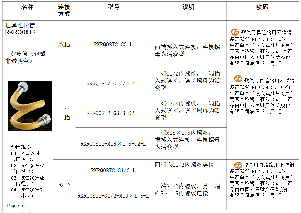 灶具连接管-RKRQ08T2 黄皮管(包塑,非透明色)